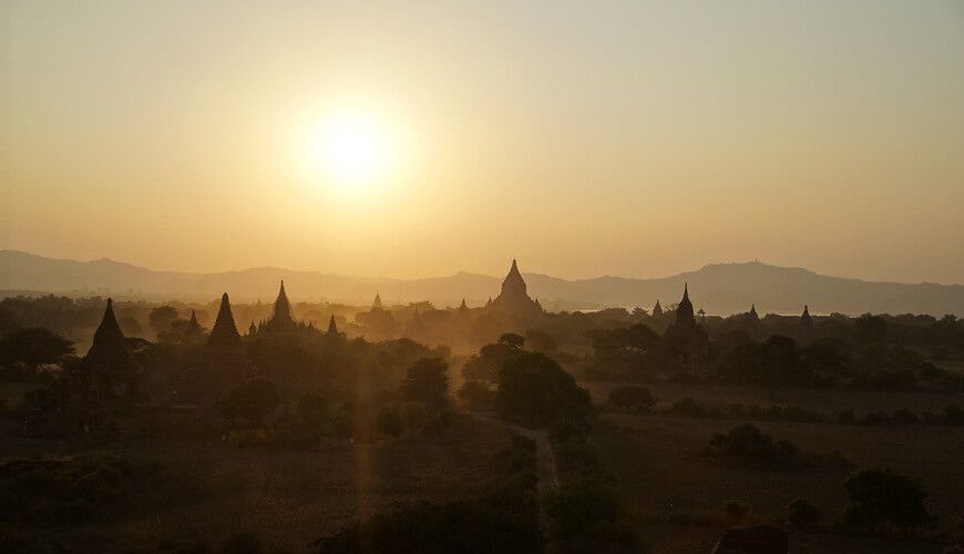 When the day comes to an end, you can have an opportunity to contemplate the spectacular sunset over the temples plain of the ancient city of Bagan.