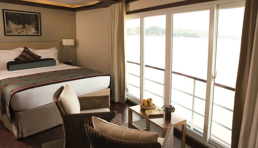The Belmond Orcaella provides 13 cabins with cozy area, creating the comfortable and elegant accomodation for weary passengers. All cabins are fully air-conditioned and equiped with high-class facilities, including paranomic windows leading to wonderful views.