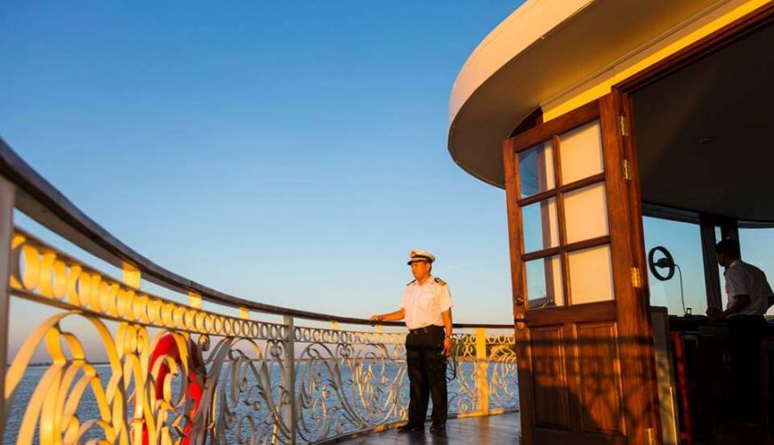 The two Kipling Suites situates at the bow of the Irrawaddy Explorer on Imperial Deck. Each suite offers 25.4 sqm of space, furnished with British colonial decorations. The best of Kipling Suite lies in its two floor-to-ceiling glass doors: one leading to French-style balcony, the other leads to a small balcony at the ship’s front. Both provide astounding views and best suit for those who prefer relaxing and enjoying sceneries as the ship sail.