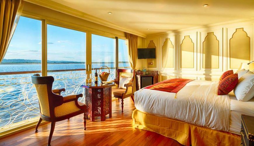 The Maugham Suites of Irrawaddy Explorer located on the Colonial Deck, each offers 26 sqm of space of relaxing and comfortable sensation. Each suite also includes spa-style bathroom with spa-quality bath amenities, floor-to-ceiling glass doors leading to French balcony with splended seats for an excellent retreat.