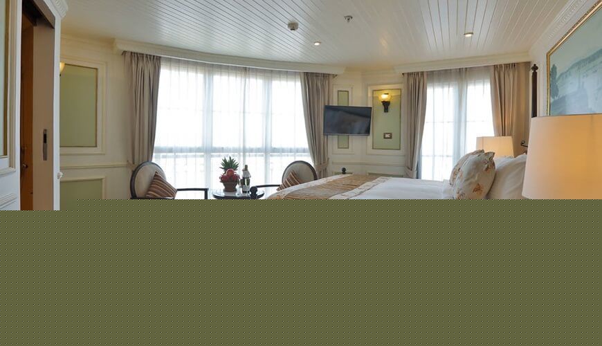 If you want to immerse in the spectacular view of the river, the Royal Suite is the perfect cabin for you for the ideal location at the bow of the ship. The stateroom also features modern faciclities and a en - suite bathroom for your comfort and convenience.