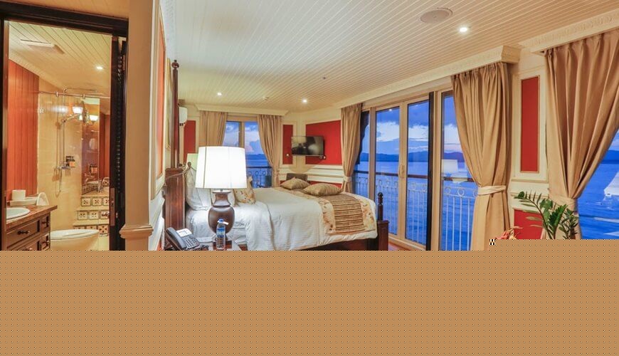 Located on the main deck, the 10 amazing Prome Suites guarantee to bring the most comfortable and relaxing feel to the passengers. Each room comes with a private bathroom, a panoramic window and all necessary amenities for your basic needs.